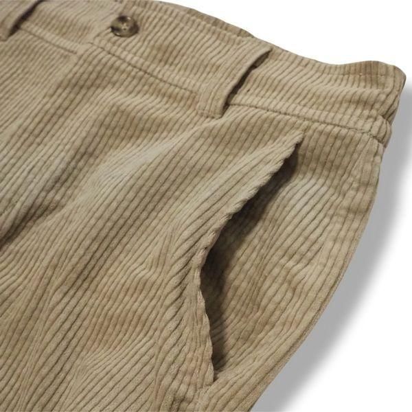 コーデュロイ生地に洗いをかけることで、まるでスウェットのような柔らかな肌触りを実現しました。
