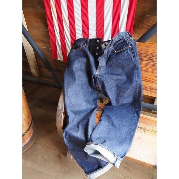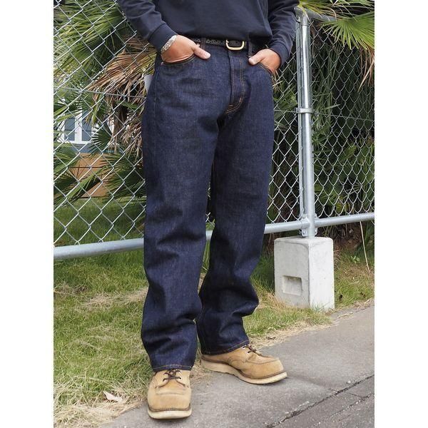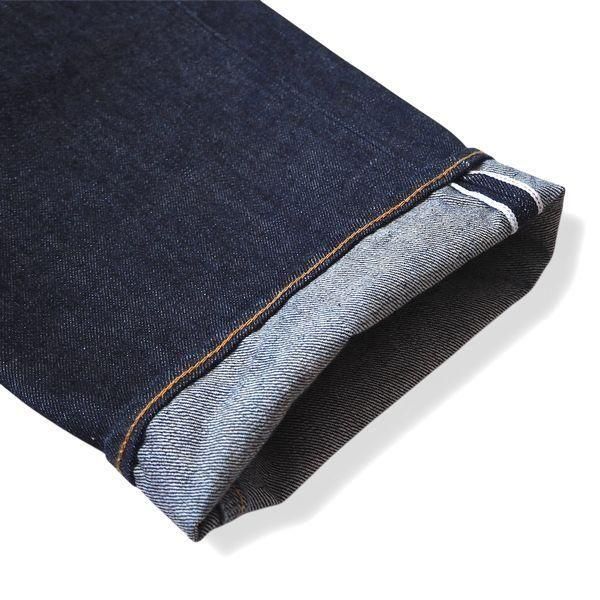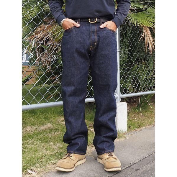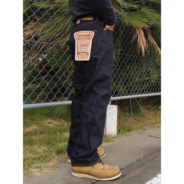 緯糸に茶綿を使用したセルビッチデニム『JUMBO DENIM』を使用した、ベーシックな王道ストレートシルエットのジーンズ。