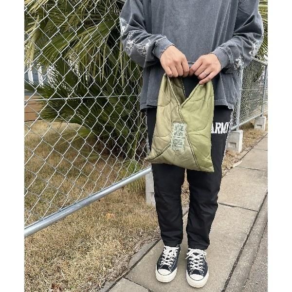 THRIFTY LOOK / QUILT TRIANGLE SMALL TOTE リメイクミリタリートートバッグ(S) TL25S02100・OLIVE