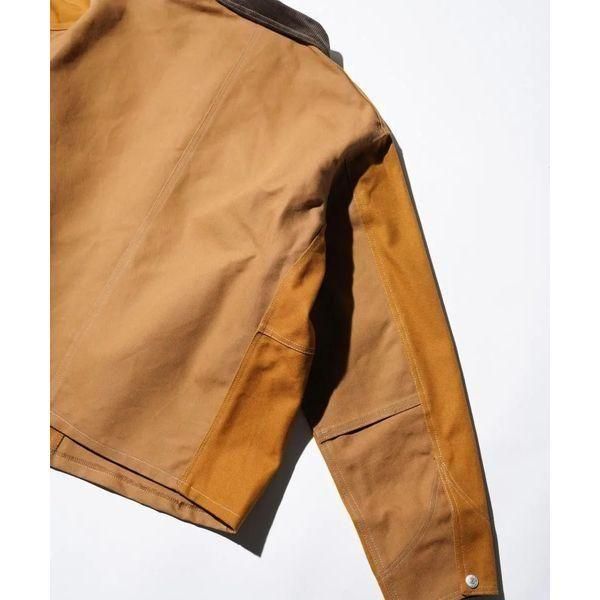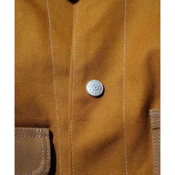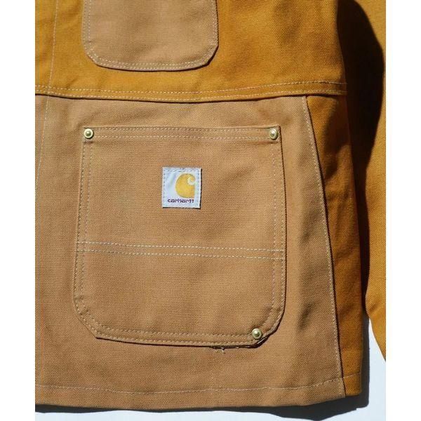 USカーハートのダブルニーパンツを解体し、カバーオールジャケットにアップサイクルした一着。