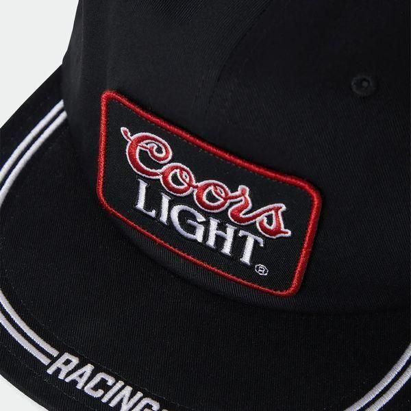 COORS LIGHTパッチをセンターに配し、ブリムにはストライプデザインとRACINGレタリングを刺繍。