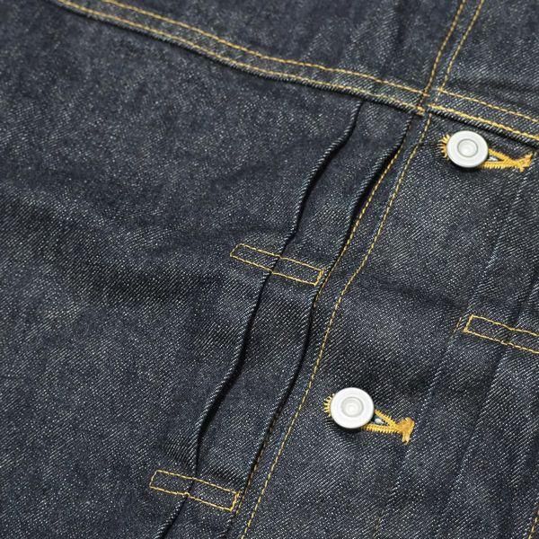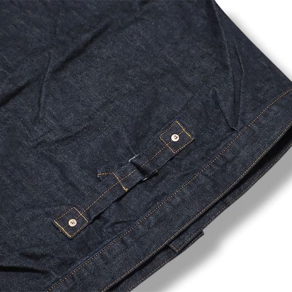 生地には風合い豊かな14.5ozのJUMBOセルビッチデニムを使用。着込むほどに味わいが増し、経年変化がお楽しみいただけます。