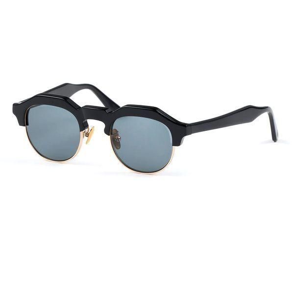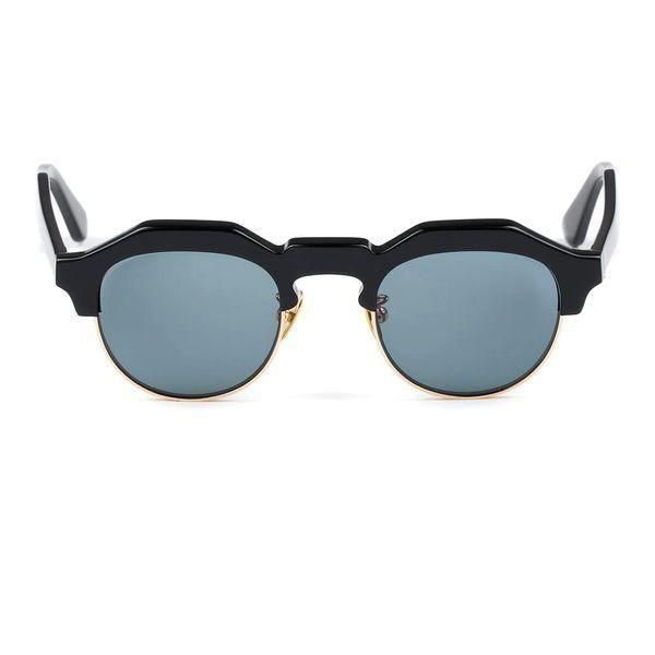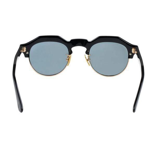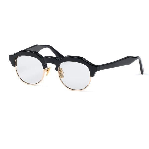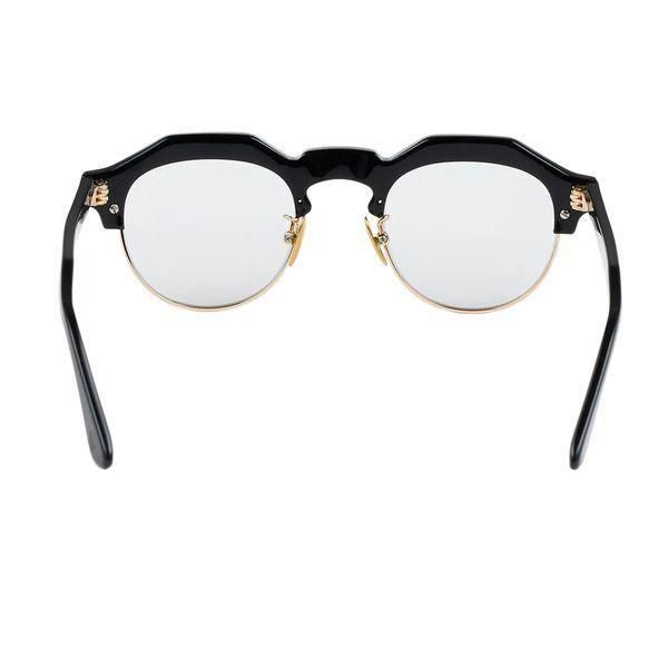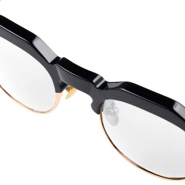 クラウンパント型のブローラインに、彫金を施したアンダーリムを配すことにより、武骨さの中に気品が見える仕上がりに。
